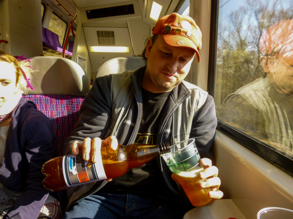 Byl krásný jarní den, plný slunka, což lákalo na nějaký ten výlet do okolí. Caravel na forum nadhodil, že by se rád podíval na Karlštejn. K němu se přidala Bublina s Lukášem a psem, marek-26, špáčo, xteena a moje maličkost. Sraz jsme si dali na hlaváku v 10 u provoněného stánku s burgry. Usedli jsme do posledního vagónu a na Smíchově se k nám připojil Caravel. Ten se zhostil role zásobovače a hned v prvních minutách vytasil těžký kalibr v podobě vlastnoručně vařeného pivča „Stodůlecký čert“ (obr.1 a 2). Pivčo bylo pořádně uleželé 😆 ale bodlo. Ještě než jsme stačili pivča dopít, už jsme byli u hradu (obr.3). V podhradí jsme si našli první škatuliny a posilnili se výbornými koláči. Já šel proti proudu a dal si Štramberské uši s Lipánkem :-D. To už se ale blížíme k úvodkám zlatého hřebu dnešního slunečného dne – wigo Hans Hagen!