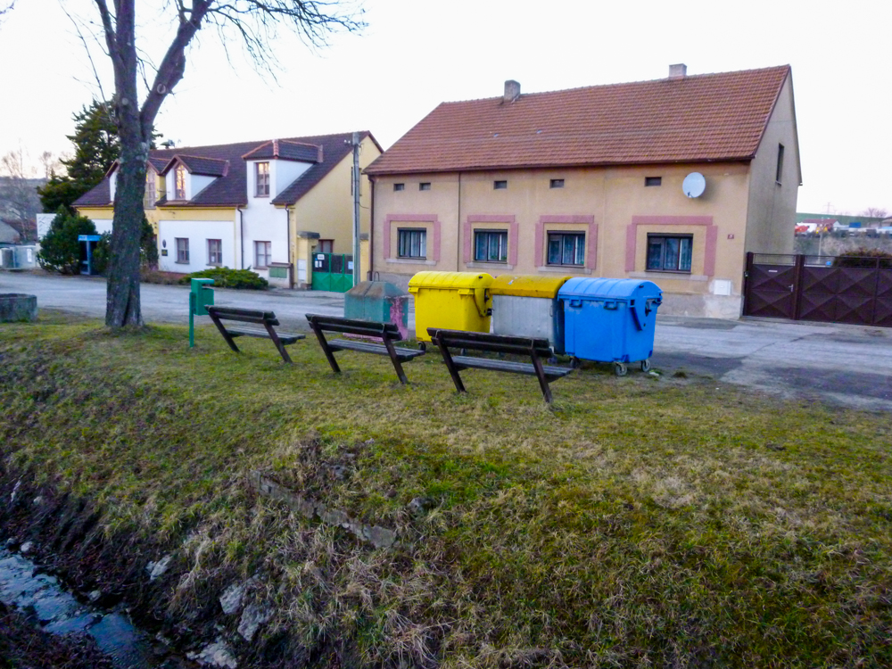 Vedle jsme si ještě sebrali pár krabiček, Bublina si po menších peripetiích sebrala za zákazem vstupu Munzee 😀 a na parkovišti jsme se opět setkali s Caravelem a špáčem, kteří tu na nás čekali. Pak už následovala jen cesta do Mořiny na autobus. Zpočátku se zdála býti malebnou vesničkou, plnou kobylek a romantiky…aby té krásy ale nebylo v jeden den moc, na náměstí nás přivítal puch z místního JZD a z laviček na náměstí také nebyl zrovna nejhezčí výhled 😆 a tak radši hurá domů, každopádně myslím si že ne jen já, se budu těšit na další podobný výlet! Díky! 😉