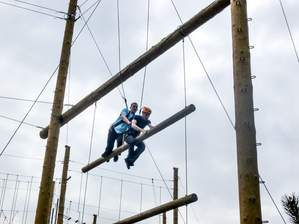 V skutocnosti ide o to ze len za pomoci horizontalnych klad, ktore sa od seba vzdaluju cim si vyssie, a ktore su len zavesene na tych 2 lanach na kraji, sa snazite dostat na samy vrchol a dotknut sa tej najvyssej klady. tzv Jakubuv Rebrik