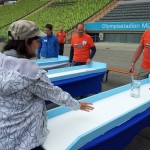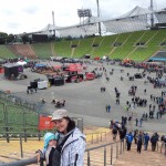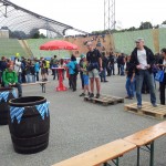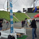 Rôzne jednoduché súťaže, v ktorých nezáležalo na tom, či sme uspeli alebo nie. Vrhani pollitrov na cieľ, držanie krígla minútu, dojenie kravy, hádzanie podtáckov na cieľ, obrý labyrint, zatĺkanie klincov, úder kladivom a iné. Za každú disciplínu sme dostali razítko a už za 5 z nich sme mohli vhodiť losovací lístok do jedného z losovacích sudov. Popri tom sa konali pekné T5 akcie vo výšinách štadióna, asi tak 100 metrová lanovka a zlanenie z konštrukcie na zem(tá je vidieť na poslednej fotke vyššie). Po areáli sa potulovali Král Ludwig a princezna Sisi v zastúpení + nejaký pravý Bavor na trojkolke. Z dalších akcií spomeniem pokus o náhodné otvorenie trezora s Garminom v útrobách (4 číselný trezor), možnosť zaplatiť si výhľad z olympijskej veže, nejaký Quiz celý v nemčíne(ktorý sme absolútne nepobrali), celý čas hrala Oktoberfest kapela, v okolí stánky na všetko možné aj nemožné ku GC. Občerstvenie za pár šupov (Klobáska 4€, 0.5l Coca cola 2€..)