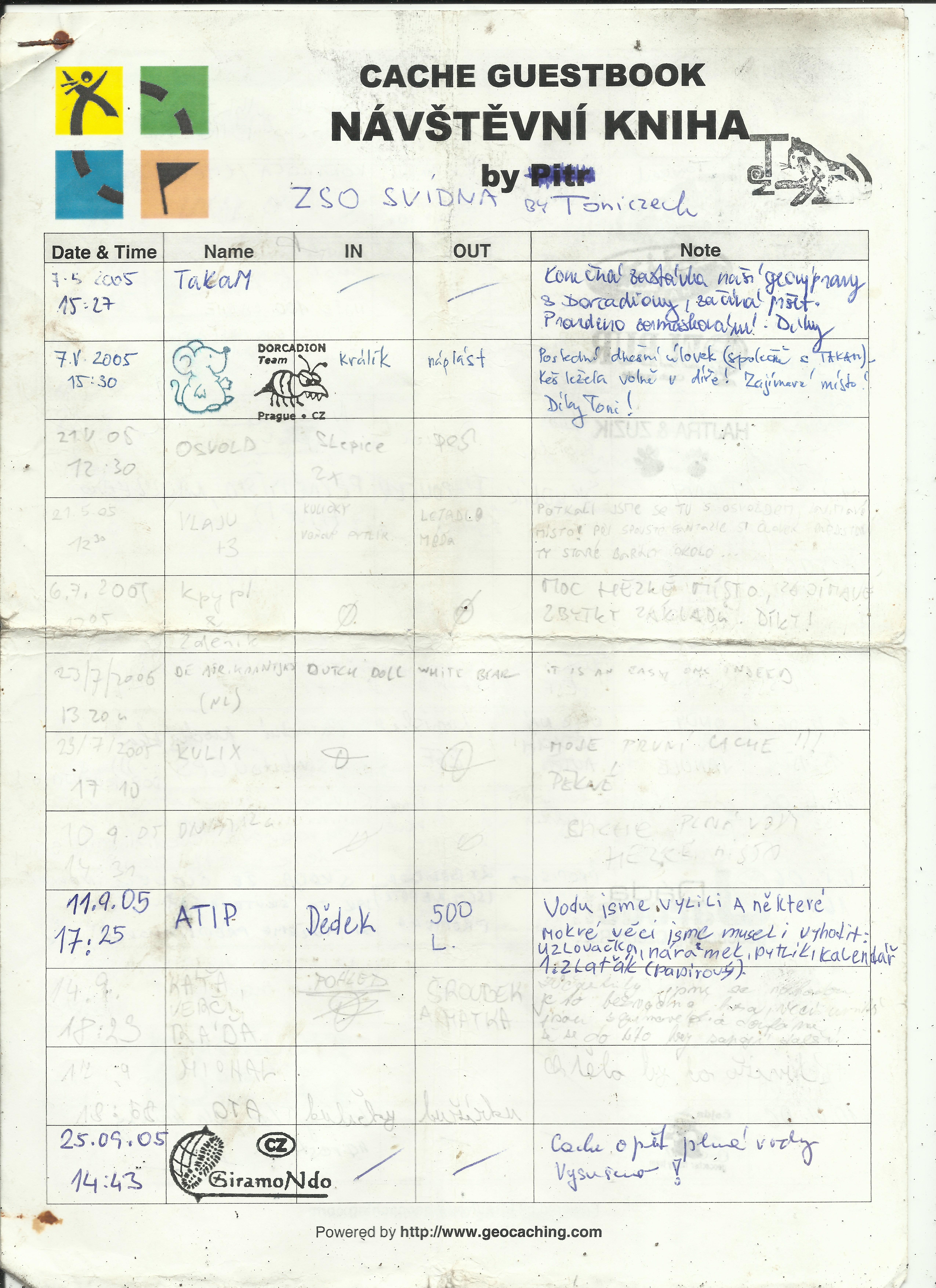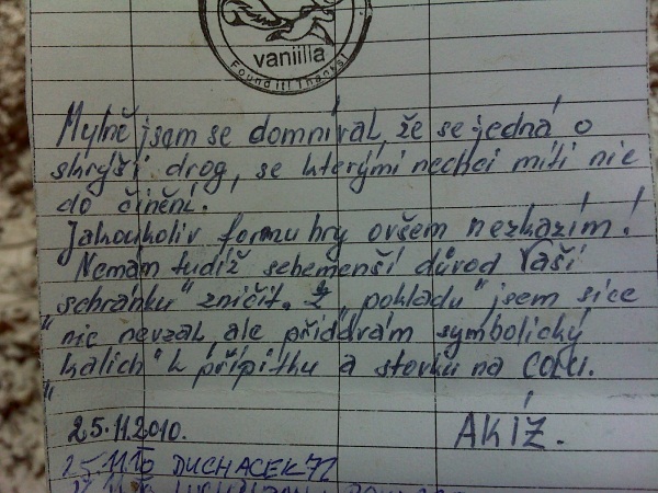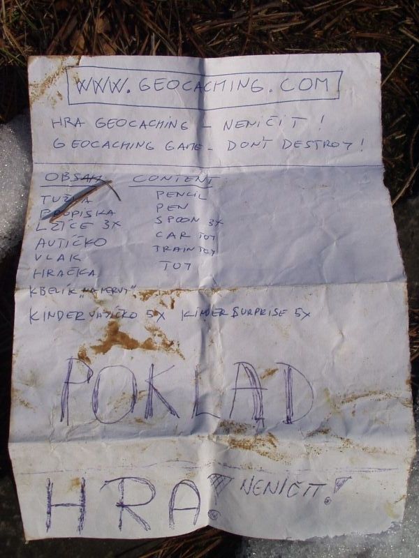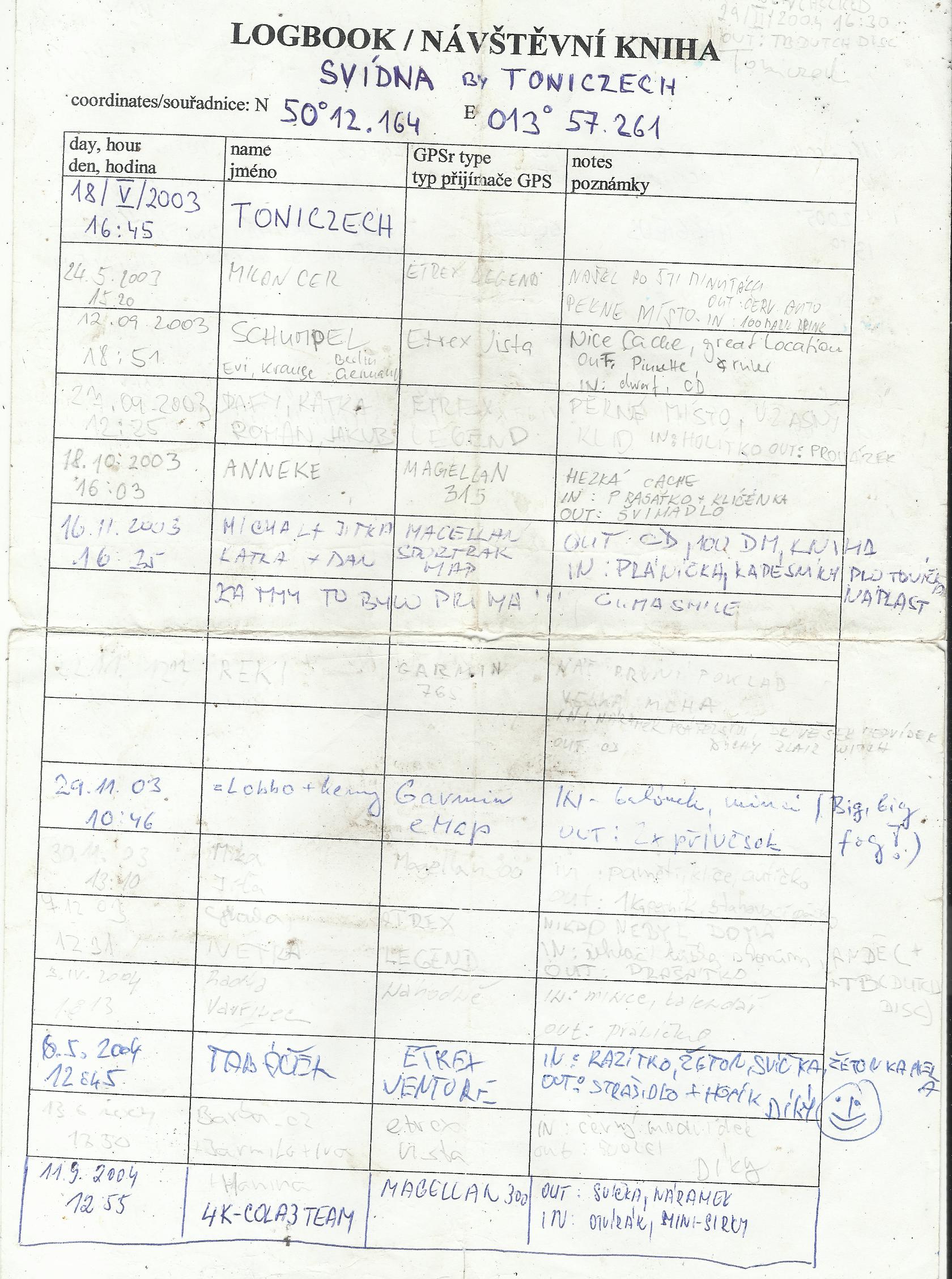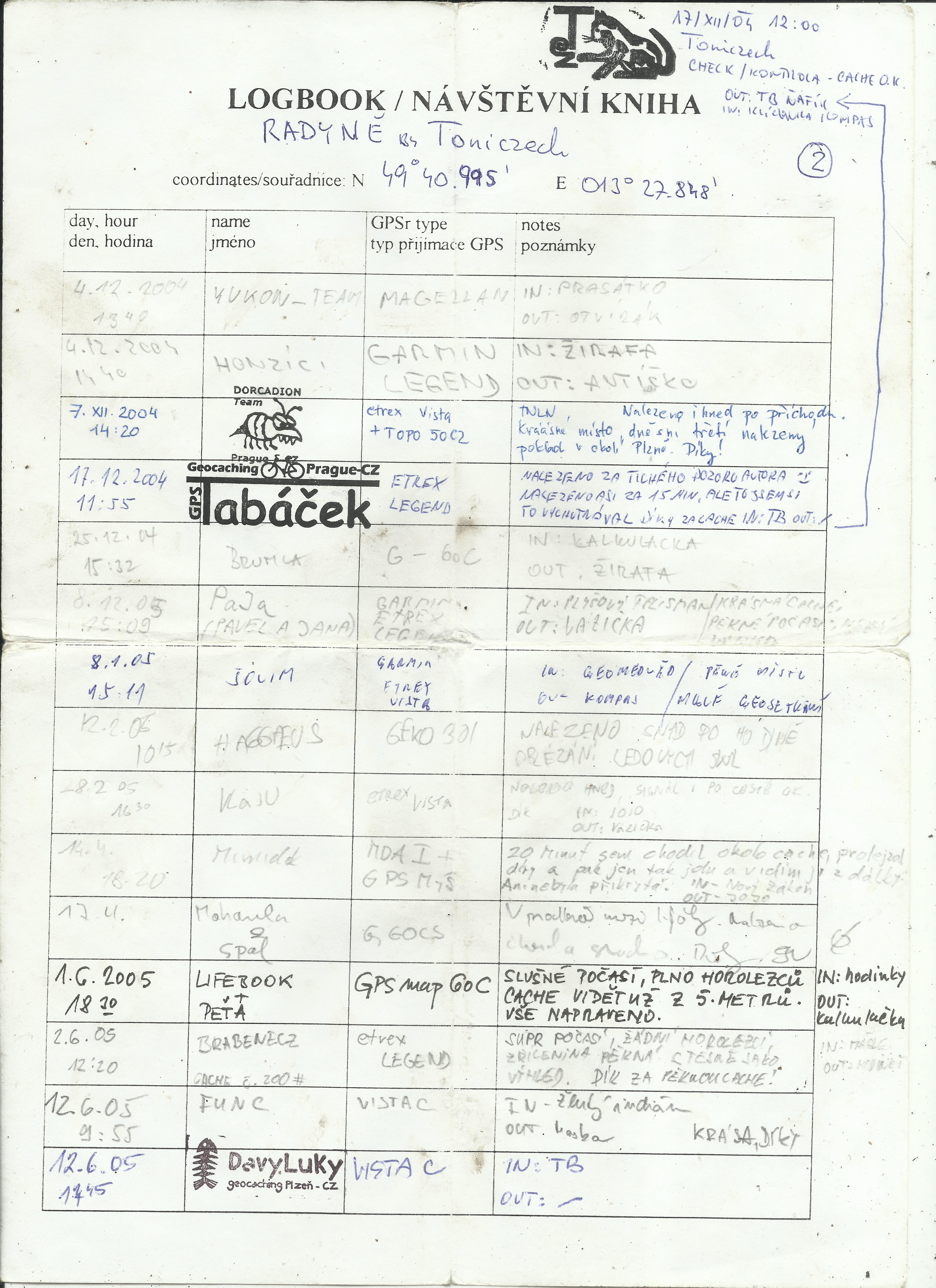 Dále pokračujeme sbírkou relikvií od kačera Toniczech na jeho keších (pozor, obří velikost skenů) obsahuje: