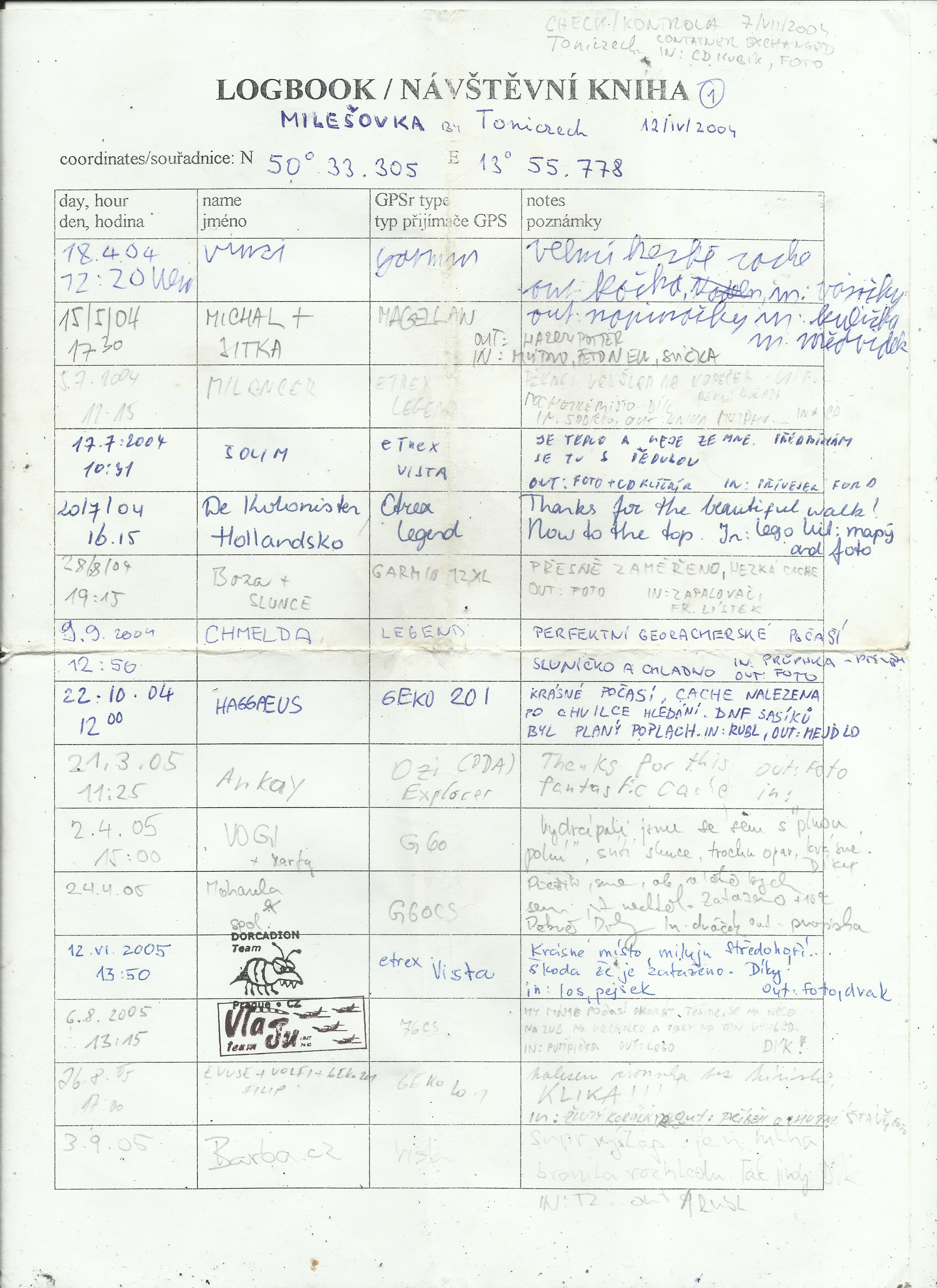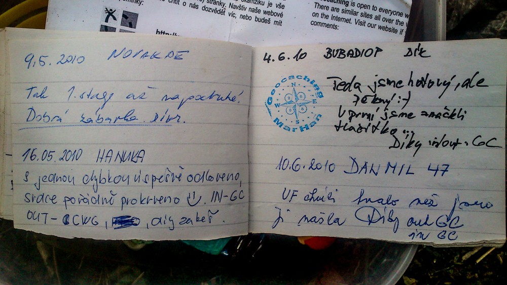 Fotogalerie starých logbooků z této diskuze ZDE na geocaching.cz. Pojďte zavzpomínat na doby dávno minulé. Nezřídka kdy můžete v zápisech spatřit čirou radost jejich nálezců a pečlivost ownerů.