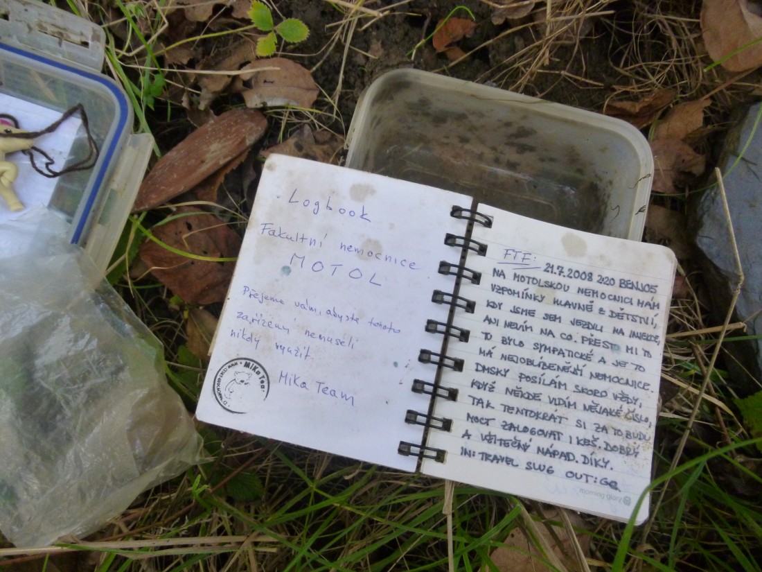Z logbooku archivované kešky Fakultní nemocnice Motol