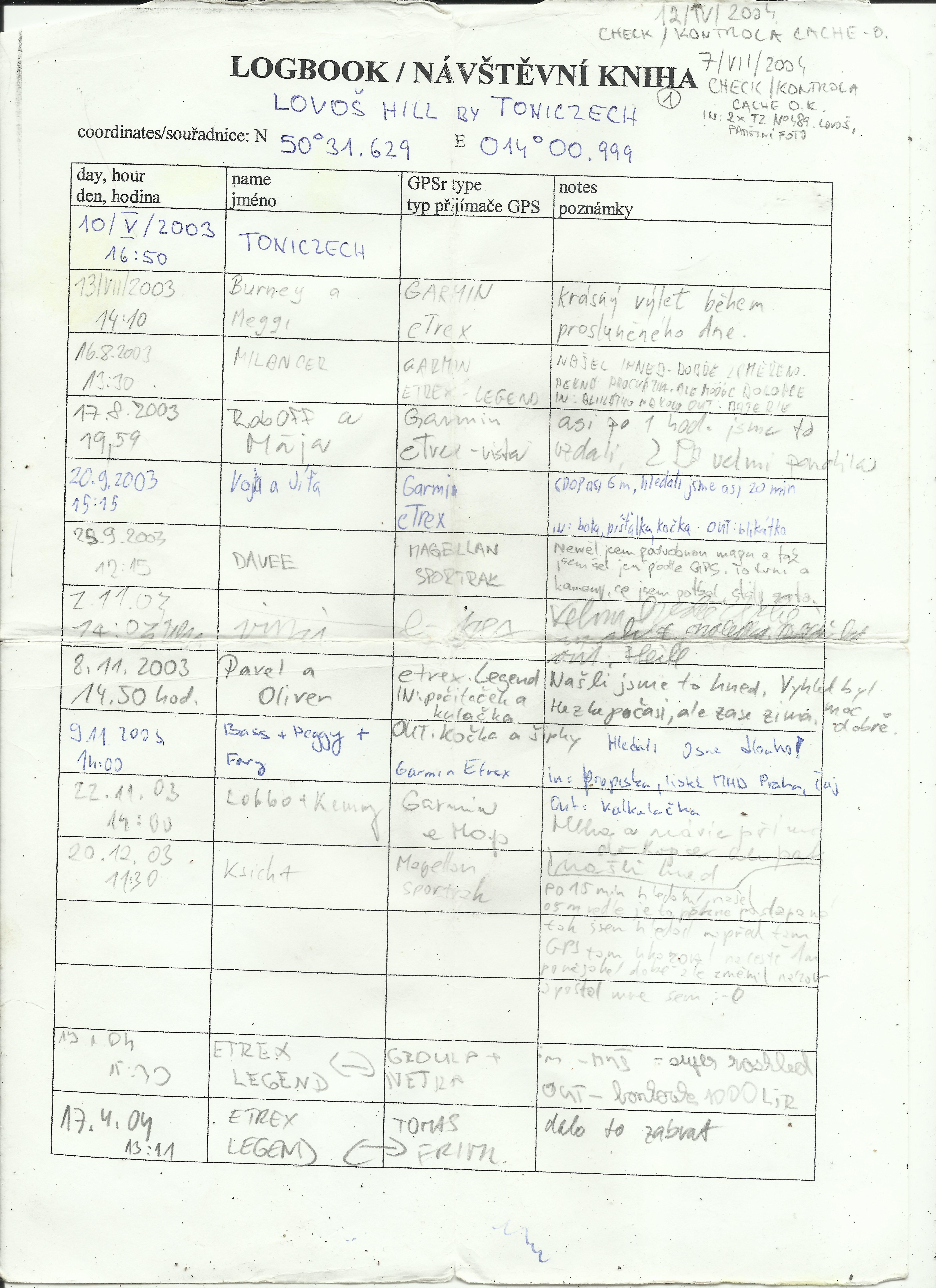 Nejstarší dochovaný logbook z GC251C z 27.10.2001. Nejdříve starší foto, které zaslal Erdogan: