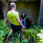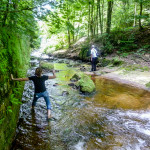 No a to už se blížíme k závěru Kateřinského údolí, tentokrát se jdeme podívat na zoubek kešce Kateřinské údolí IV. Tak co vám budu povídat, jestli to do teď byla spíše taková příjemná pohodovka, tady jsme si opravdu užili a pořádně zatěžkali naše svalstvo. Mimozakon ani netušil do čeho se to pouští, a tak si na tuto akci vzal nové svítivé tričko 😀 Na místě nás čekal opuštěný mlýn s moderním kovovým náhonem v podobě cca metr trubky v průměru, který už má ale svá nejlepší léta za sebou a byl řádně zreznutý. Mimozakon si odnesl kus rzi na triku, já také, i jsem kus ochutnal, AdMari vyvázla beze šrámu. Uuuuuf, tohle byla teda síla! 😎
