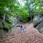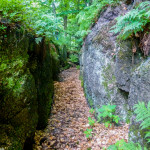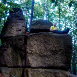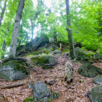 Další zastávka byla skalní Hranatý svět III, na tu se těšil mimozakon, ale ouha…kde je keš? Skalku jsme oblejzali ze všech stran, ze všech úhlů a když už jsme to chtěli vzdát, osvítila mě myšlenka „Co když je pod támhle tou jasnou skalní schovkou“. No a byla tam! Nechápu, jak proč nás to nenapadlo a kam jsme celou dobu koukali, asi nějaké geo hromadné pomatení mysli 😀 Mimozakon si tam pro ní došel, jako kdyby byl na procházce po chodníku a mohlo se jít na další stromovku Hranatý svět.