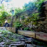 První multi, která nás k nim vedla byla Kateřinské údolí VI. Nejspíše ještě z ranní rozespalosti, udělali jsme chybu hned u první zastávky, která nás nevedla ke starému náhonu, ale…ke starému náhonu 😀 Jak vidíte, údolí je náhony doslova protkané a člověk na nějaký ten náhon narazí skoro všude. Než jsme si uvědomili, že nejsme u toho správného náhonu, uběhl nějaký čas a já dostal první hlad. Po opravě jsme se dostali ke starému mlýnu, pod kterým byl náhon se stojatou vodou. Přístup byl dost obtížný, takže jsem se opřel o auto, posvačil a mimozakon a AdMari odvedli špinavou práci 😀 . Fotografie jsou z toho špatného, ale i tak hezkého náhonu…