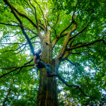 Po posilnění a doplnění tekutin, vyrážíme na druhý úsek výletu, stromovo skalní kousek od vesničky Mníšek. Pokud byl první úsek lehce průmyslový, tady jsme si užili úsek divoké přírody. První zastávkou byl Strom pro Mikulase, vzpomínková keš na jednoho kačera. A strom je to opravdu úctyhodný a hoden takové vzpomínky! Mimozakon jako starý T5 mazák nás dole připravil na vše možné a nemožné, Admari snesla logbook, já jej vynesl.