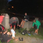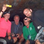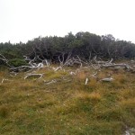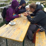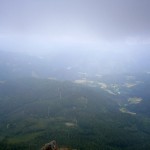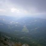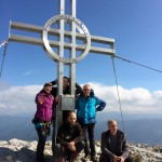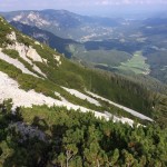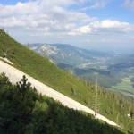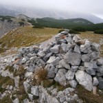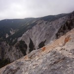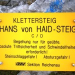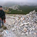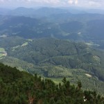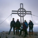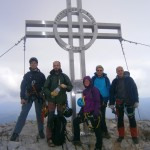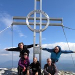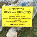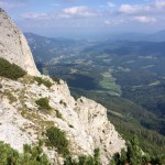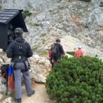 … Druhý den jsme měli domluvený budíček v 8h ráno, ale já jsem se probudil o hodinu a půl dříve a nemohl jsem zabrat. Po chvíli jsem si všiml, že i Baubunka se probudila. Tiše jsme tedy počkali do 8h ráno, abychom nevzbudili zbytek výpravy předčasně. Po 8h jsme všichni postupně vstali, nasnídali se, rozloučili se s Tomášem a Janou a já si ověřil, že v neděli opravdu nikde nemají otevřeno. Pobalili jsme věci a vyrazili bez GeoLosíků na královnu rakouských Klettersteige – Hans von Haidsteig obtížnosti C/D, která je pravá horská via ferrata, tak trochu babička s více jak stoletou historií. Malan67 říkal, že se jedná o celodenní výlet a já se těšil na několikahodinové lezení v krásné přírodě s malebnými výhledy. Díky Malan67 a jeho znalosti němčiny nám ve vedlejším lázeňském městě Gloggnitz udělali v místní restauraci obložené rohlíky a měli jsme tak svačinu. Zároveň jsme se při čekání na jídlo mohli kochat veterány, kteří měli v Gloggnitz sraz a jeli do Schottwienu k požární stanici, kde měli cíl. Byli jsme z toho v takovém úžasu, až jsme zapomněli fotit. Poté, co jsme dostali a zaplatili svačinu jsme se vydali dále. Když jsme dorazili na doporučený parking, měli jsme docela štěstí, jelikož na nás čekalo poslední volné místo. Zaparkovali jsme tedy a začali vybalovat, kontrolovat, zda máme vše atp. V tom se přiřítilo auto s brněnskou SPZ (měli jsme na ty Brňáky nějak štěstí) a z něj vyskákala posádka, která byla v gendrovém složení naprosto opačně. Čtyři slečny a jeden kluk. Zkoušeli jsme navrhnout, zda bychom se k nim nepřipojili, ale přeci jen nás čekala dlouhá cesta a potřebovali jsme udržet koncentraci. Dostali se mi do ruky papíry, kde bylo napsáno, že k nástupu na ferratu je to 2h cesty do děsného krpálu a že je třeba překonat i dost výškových metrů. Doufal jsem, že ta hodnota je nadsazená jako na informačních tabulích, které většinou udávali čas 2x tak delší, než za který jsme trasu ušli. Bohužel to moc nelhalo a tak jsme se vydali směrem vzhůru. Hned na začátku jsme i vzhledem k jednomu bolavému nateklému kolenu nezvolili velmi strmou cestu „za šipkou“, ale stoupali jsme pomalu po serpentinách. Poté už by ale chození po lesních cestách znamenalo až příliš velkou zacházku a tak jsme pokračovali lesními pěšinami jak jinak, než vzhůru. Po dlouhé době jsme dorazili k lesní studánce, kde jsme si trochu odpočli a já vyzkoušel místní pramen. Voda byla lahodná a ledová. Ještě před studánkou jsme potkali čtyřčlennou skupinku Čechů, kteří již šli směrem dolů. Prý nastupovali již v 7 ráno a nyní je tam už prý dlouhá fronta. A tak jsme se u studánky moc nezdržovali, aby nás nedošly a nepředběhly další skupinky ferratistů.Studánka byla zhruba v půlce cesty vzhůru a nás tak čekal ještě pořádný kus cesty a stoupání. A kupodivu neměla studánka svojí keš, ale už předchozí den jsme konstatovali, že přeci jen nejsme v čechách, kde má keš každé druhé podobné místo. Naštěstí druhá půlka cesty vcelku utekla a my vyflusaní skončili pod nástupem, kde skutečně byla fronta. Jelikož nebylo moc kam spěchat, nespěchali jsme s oblékáním a dali si svačinu. Rozbalil jsem si tedy první kornspritz a jen tak tak jsem odolal pokušení sníst i druhý. Po chvíli dorazili Brňačky se svým průvodcem a my s hrůzou zjistili, že ani jedna z nich nikdy nelezla a ani neví, jak se obléknout do sedáku, ale kluk nás ujistil, že ví co dělá a petegeo s Dhjest mi řekli, že se nemůžu strachovat o celý svět a mám se soustředit na sebe a svou skupinu. Kdy nás začali docházet další skupiny, tak jsme se i díky Baubunce, která již byla nedočkavě přicvaklá k hromosvodu, zvedli. Bohužel naší skupinku rozdělil německý pár, který se vyšplhal k nástupu a hned šli na věc. Naštěstí se s nimi náš chvost při první vhodné chvíli dohodl a předběhl je, ale mezitím je stačili předběhnout další dva kluci. Ty jsme pro změnu po chvíli pustili před sebe my na čele, protože bylo vidět, že ti nás rozhodně zdržovat nebudou. Užívali jsme si krásné lezení, slepičí žebříky, místy až moc umělých stupů resp. pozůstatky původního kotvení a na druhou stranu místa, která byla hladká a vyleštěná. Byla to krásná pohodová cesta, ne moc fyzicky náročná. Po chvíli jsme se dostali na náhorní plošinu, kde byla vrcholová knížka, soška černé madony a hlavně keš Schwarze Madonna, se kterou na nás petegeo již čekal. Pokochali jsme se výhledem jak směrem dolů a v dál, tak i směrem nahoru, kde protější mrcholek hory halil tmavý mrak. Poté, co jsme se pokochali a odpočinuli si, jsme se vydali přes nejištěný úsek a suťové pole zase dále k nástupu na závěrečnou část. Po vydrápání se ke konci ferraty jsme se objevili kousek pod vrcholovým křížem Preiner Wand, ke kterému jsme se vydali si udělat vrcholovou fotku. Bohužel se nízká oblačnost dostala i sem a tak jsme vlastně vstoupili do spodní části mraků. Foukalo to jako blázen a naše propocená těla rychle chladla. Přioblékli jsme se a po nafocení jsme počkali, až se rozutečou mudlové, abychom si mohli odlovit keš Preinerwandkreuz. Poté jsme se vydali k chatě Seehütte na něco teplého k jídlu. Nakonec jsme si dali všichni gulášovou polévku, která bodla a nikdo z nás nelitoval bezmála 5€ za porci. Já si po jídle svlékl úplně mokré triko a oblékl si mikinu a na ni větrovku. Hned mi bylo o poznání lépe. Poté jsme se rozhodovali kudy dále. Čas jsme měli dobrý a nabízeli se tři varianty sestupu. Buď od chaty Seehütte pokračovat dále po žluté stezce (takové skoro silnici), nebo si to vyšlápnout zpět k vrcholovému kříži a s