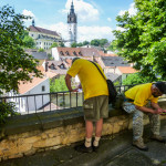Určitě každý zná písničku z filmu Páni kluci – „Nestůj a pojď, nestůj a pojď, my jsme ti tři jak se patří, nápadů studánka…všem holkám zprávu dá že, vyplujem dál a poplujem dál…za všemi poklady světa, které nás čekají.“ Pokud si ji chcete zabroukat, zde je k ní ODKAZ. Nutno říct, že vše z ní se k tomuto článku přímo dokonale hodí. Po megaeventu v Terezíně nám zbyla ještě volná neděle. Co s ní? Zamířil jsem směr Litoměřice, na benzínku a volám Zdendovi, zda někde loví. Jsou prý s fcbtomasem přímo v Litoměřicích a obíhají nějakou multi. Setkávám se s nimi na náměstí, najít se nebylo těžké, nová žlutá trika geopraha jsou vidět na míle daleko 😀 Což se skvěle hodí i k místní webce – Litomericka_webka. Já myslím, že jsme na přechodu dobře vidět. Posuďte sami.