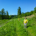 Pří opouštění města ještě zastavujeme u finálky počáteční multi Leitmeritz walk, ale ač byla procházka pěkná, poklad podle logů v podobě pohozené PETky uprostřed přemudleného parku opravdu nenacházíme. Chuť si tedy spravujeme na tradičce Zahrada Čech a hurá do Levína! No co vám budu znovu povídat, dostat se do těchto míst, která člověk velmi dobře zná z filmu, parádní zážitek. Nádraží už dávno neslouží svému účelu, je v soukromém vlastnictví a koleje tu připomíná už jen rovný úsek plný štěrku a kamení zarostlý břízami, ale přesto si člověk místa perfektně vybaví. Nakonec úspěšně nacházíme i vtipnou finálku a hurá na vyluštěnou sérii ve slunečném počasí. U auta zjišťujeme, že odbočka u silničky na které stojíme, je také původní přejezd kolejí, stopy po slavné minulosti jsou tu znát všude.